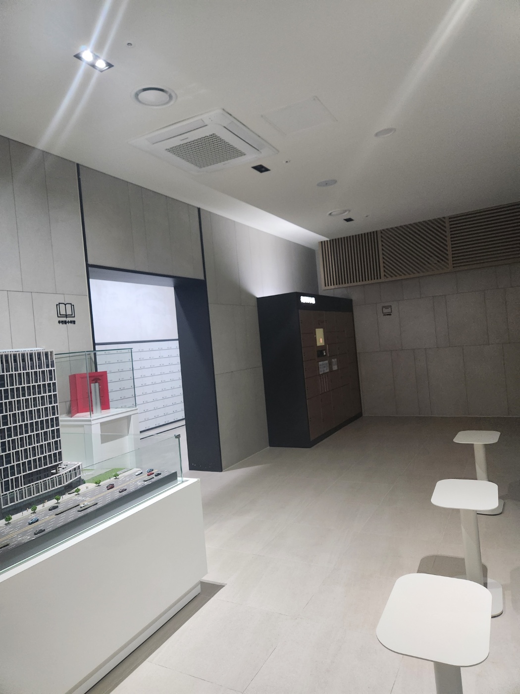 1층 무인택배함, 우편함 옆으로 입주민을 위한 라운지가 있습니다.