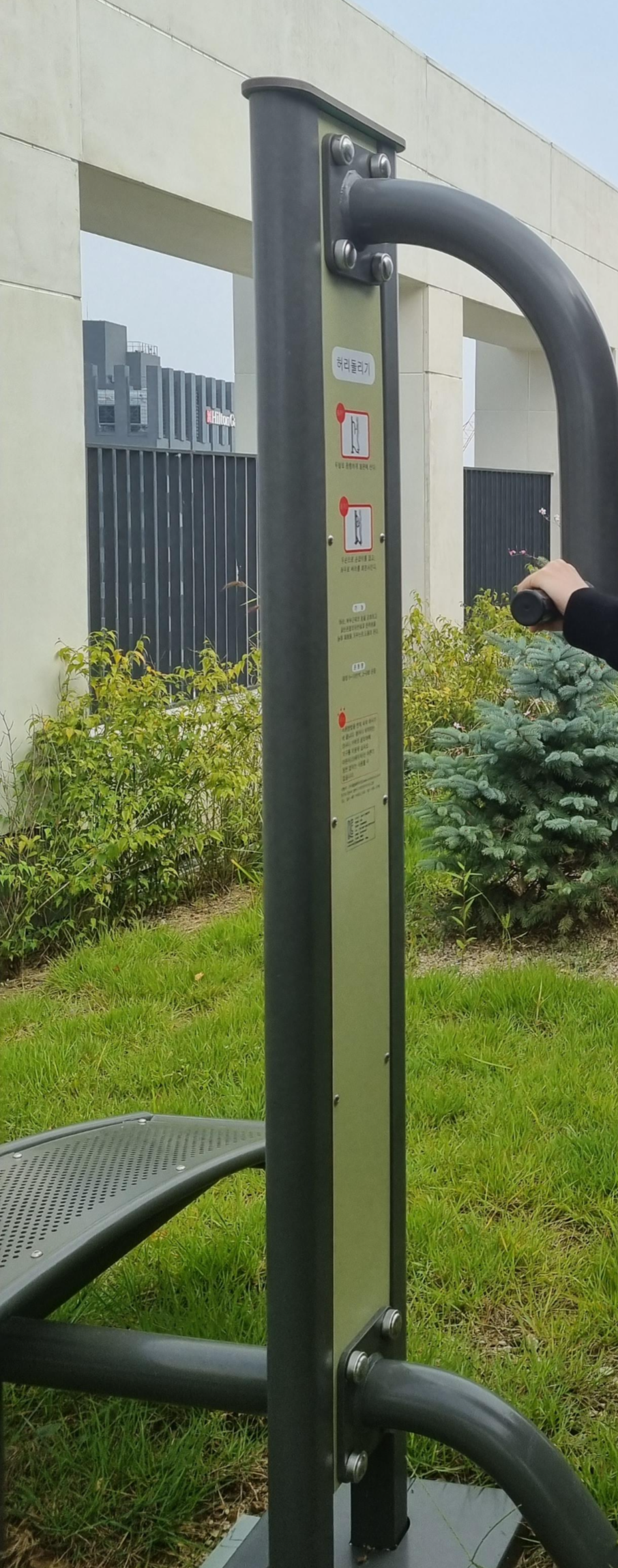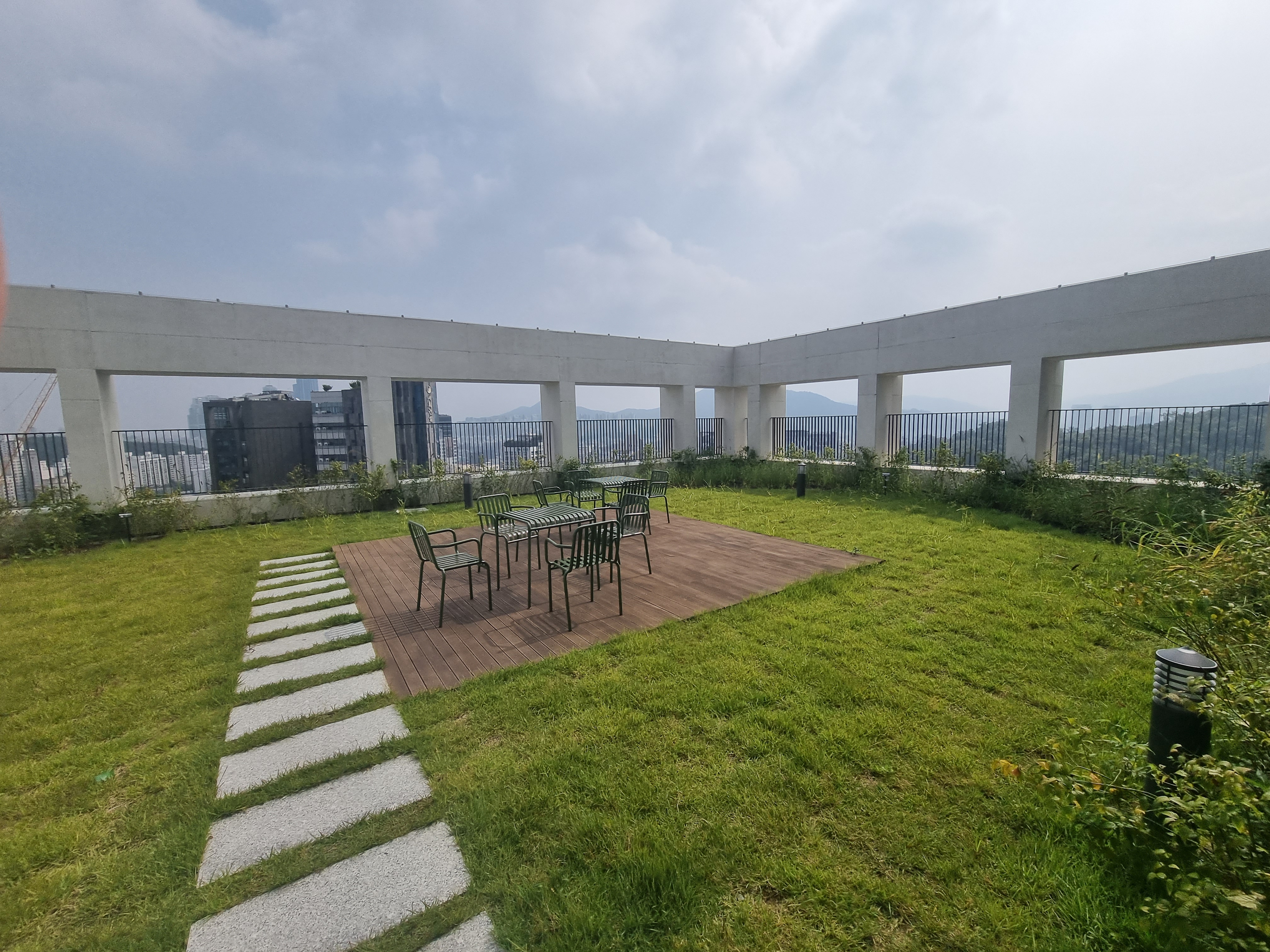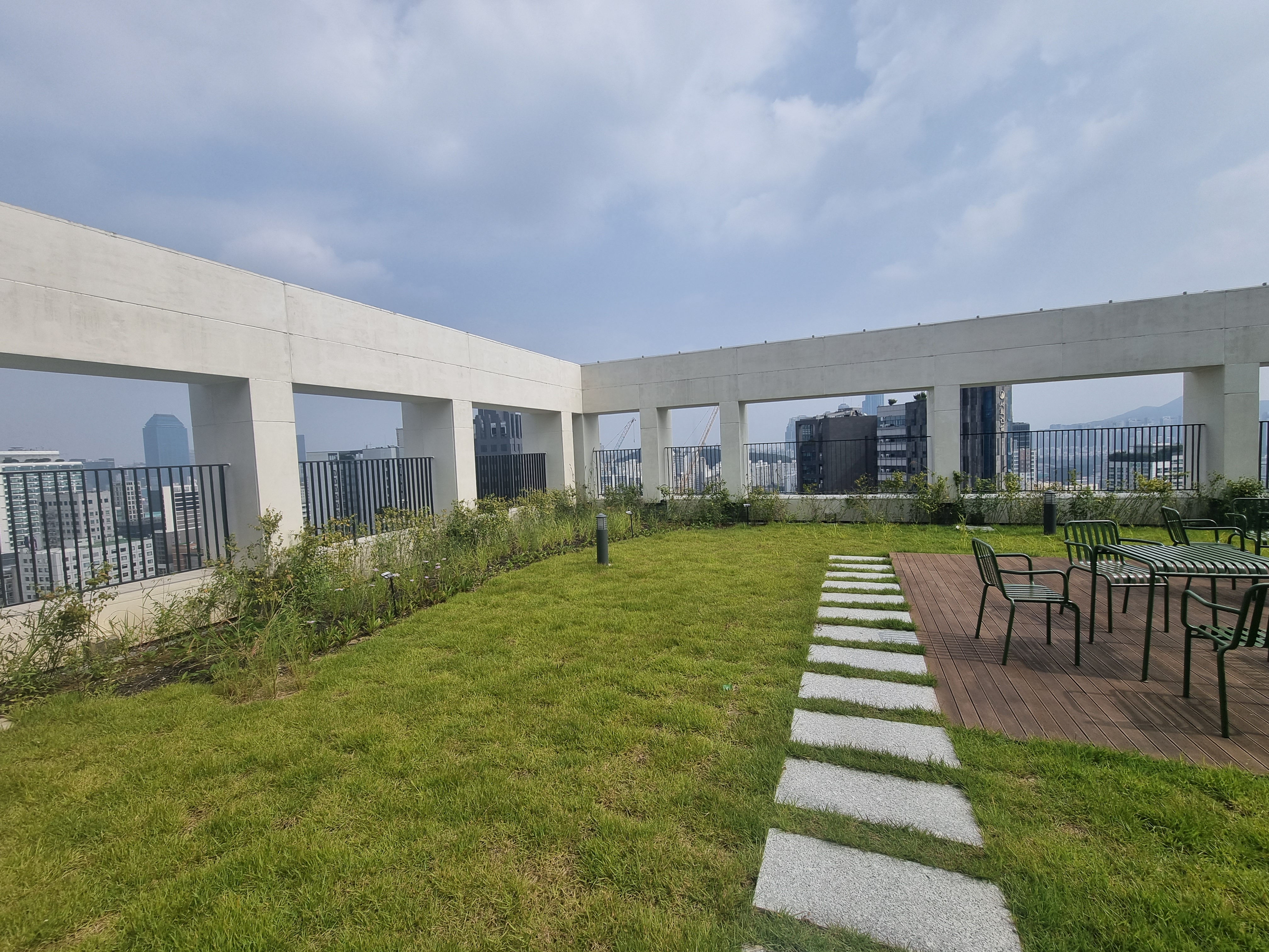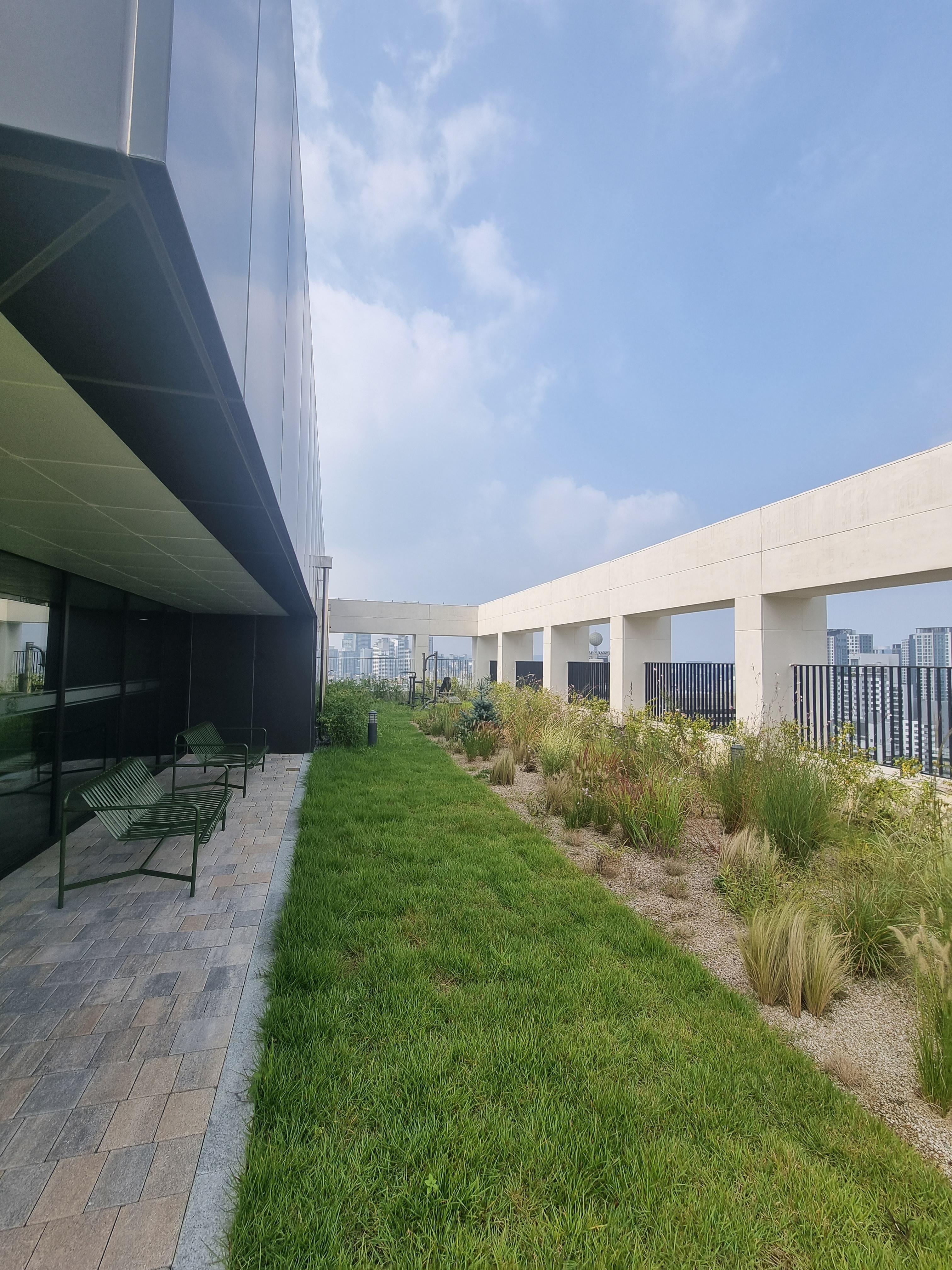 코네스트 옥상 정원도 가끔 이용합니다. 테이블과 의자, 운동기구도 있습니다.