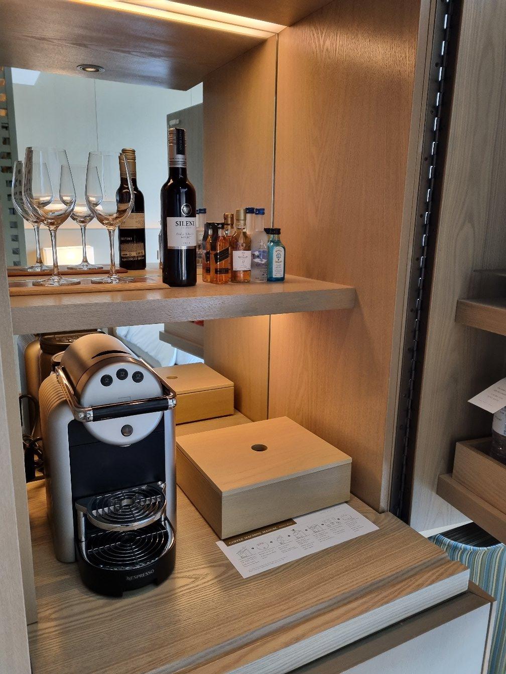 커피머신도 있어 사용하였습니다. 미니 위스키 병들이 귀엽네요.