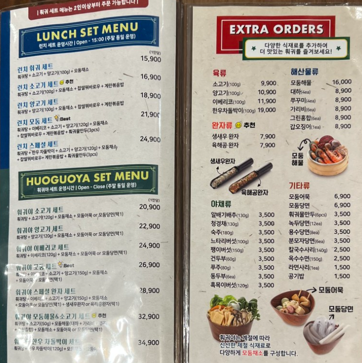 저희는 훠궈야 모둠 세트를 주문하였습니다.