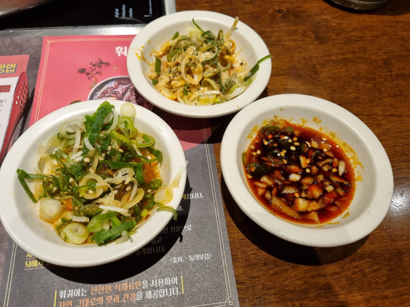 훠궈야 셀프 소스바에서 추천하는 마장소스 , 칠리소스, 간장소스 모두 만들어 왔습니다.