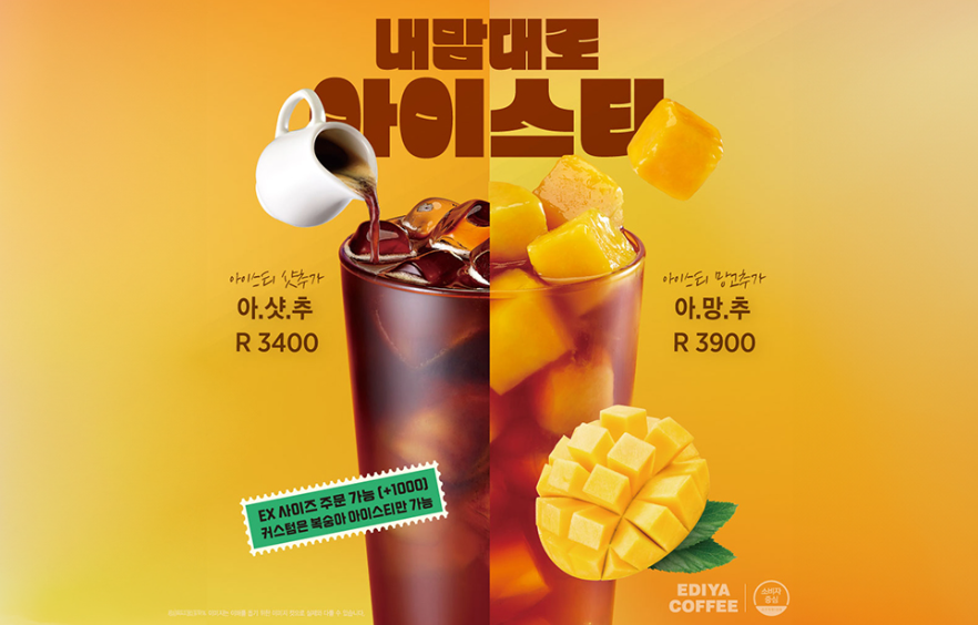 '아망추'는 복숭아 아이스티에 망고를 추가한 이디야커피에서 새롭게 나온 신메뉴입니다.