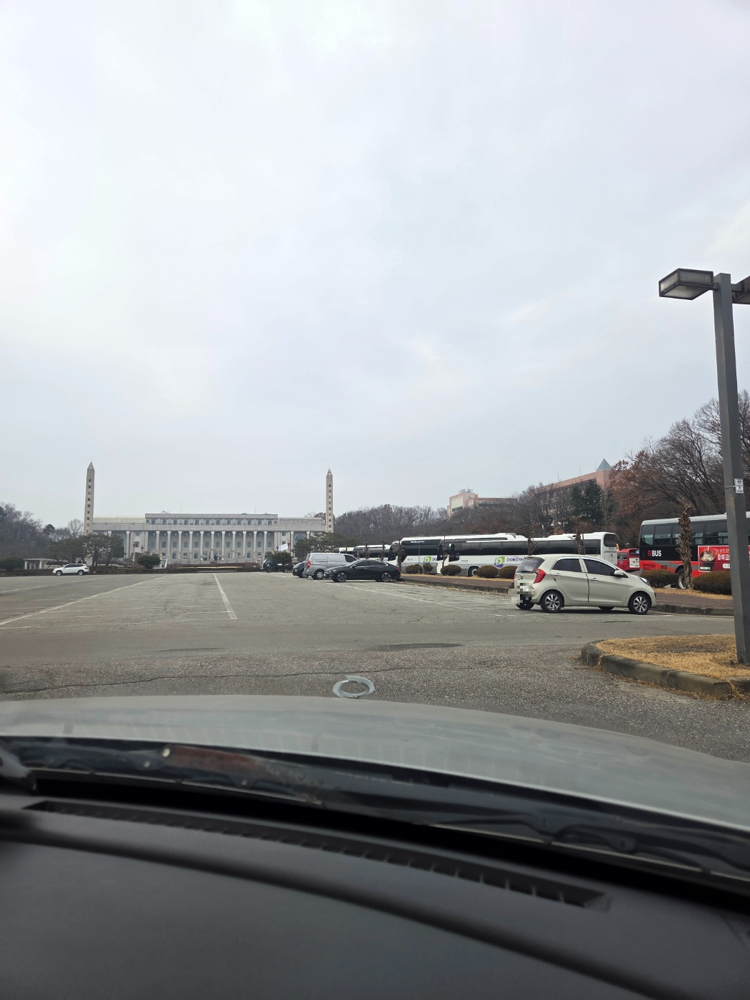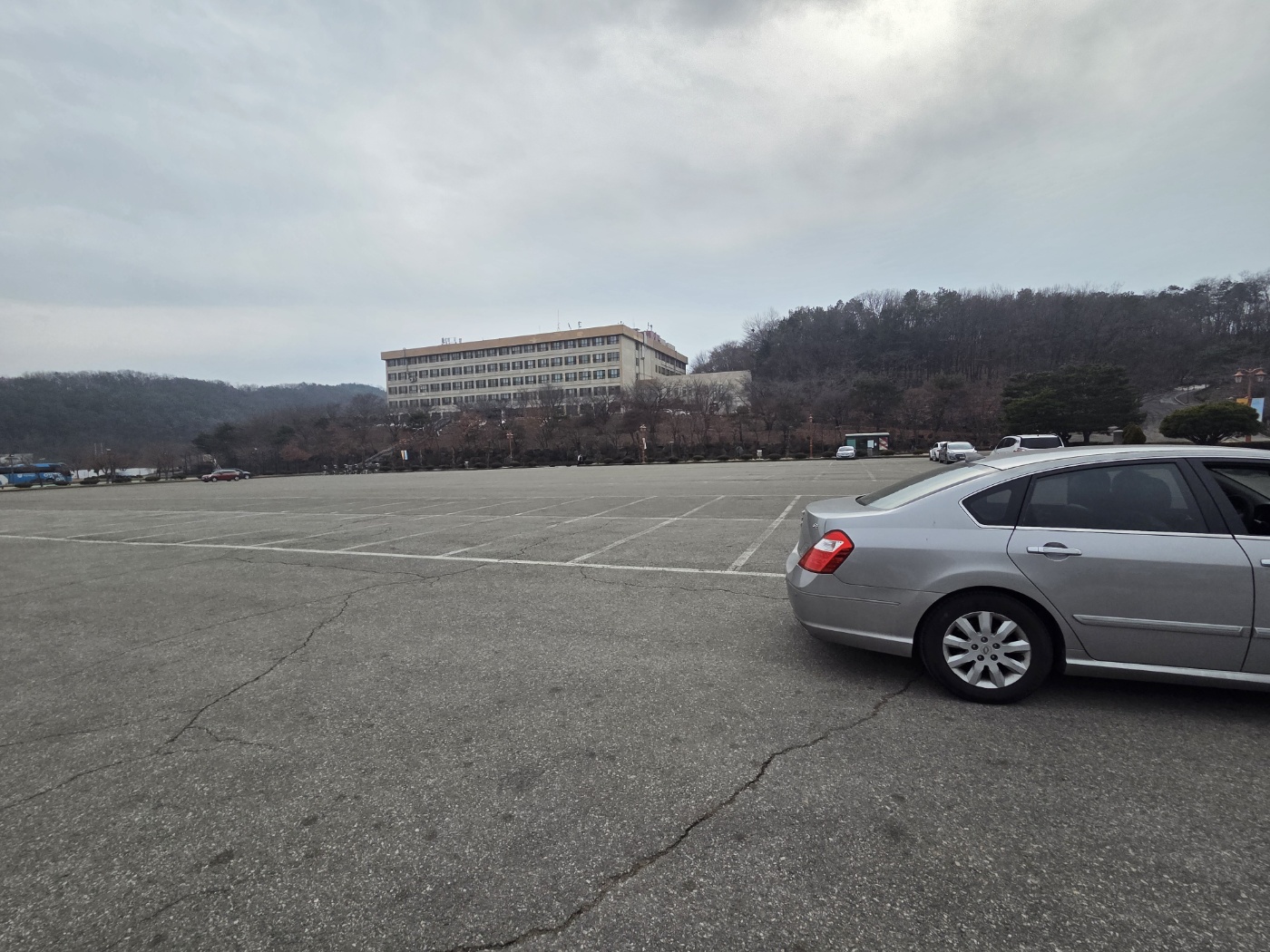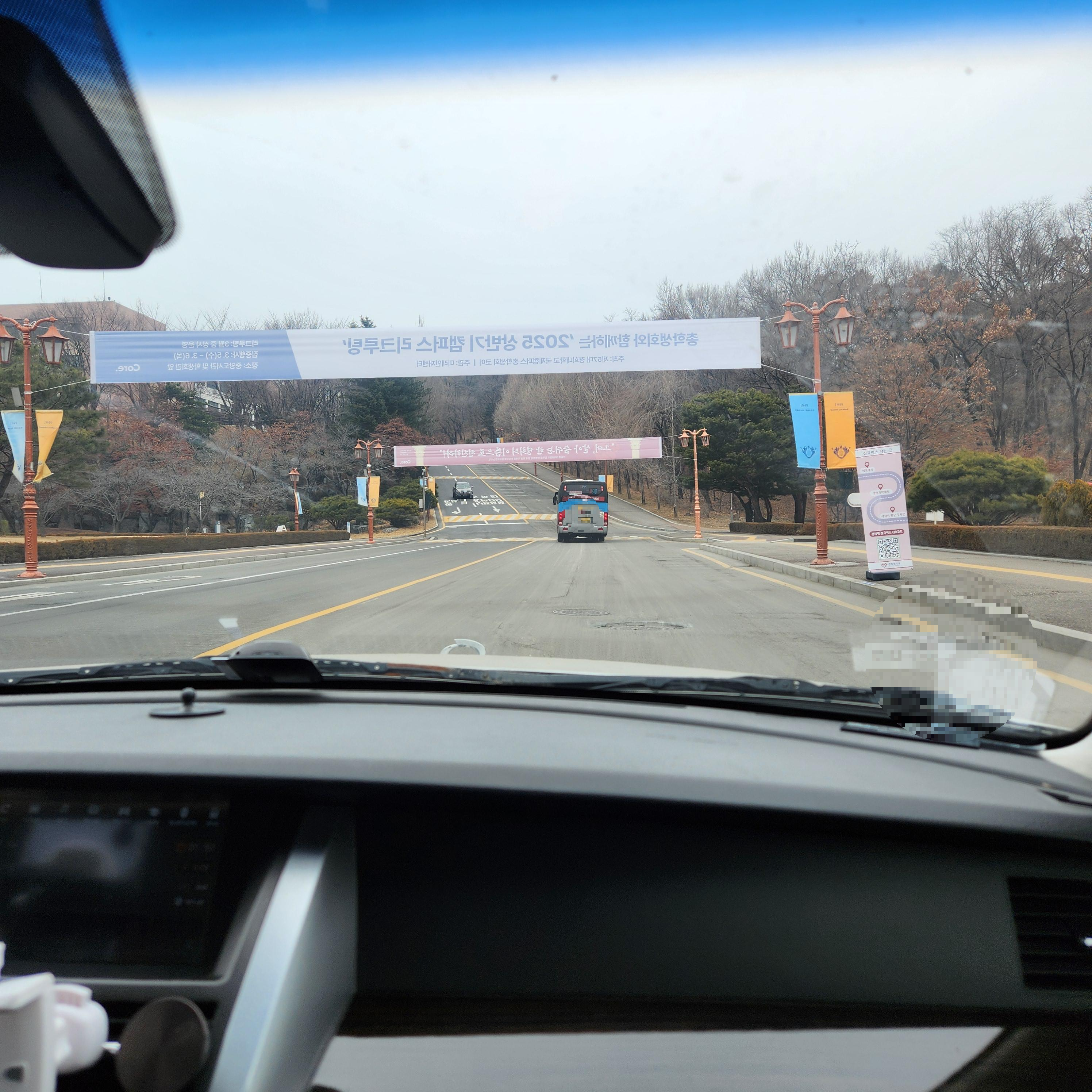 경희대 국제 캠퍼스는 주차 공간이 널찍하고 주말에 차도 거의 없어 조심히 운전하기에 좋았습니다.