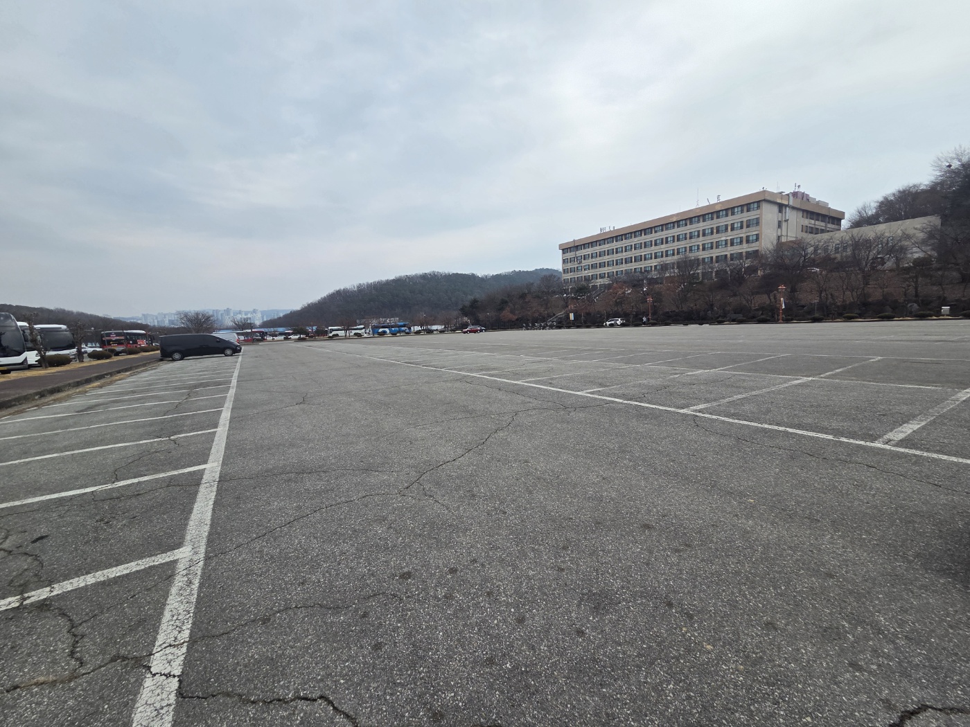경희대 국제 캠퍼스는 주차 공간이 널찍하고 주말에 차도 거의 없어 조심히 운전하기에 좋았습니다.