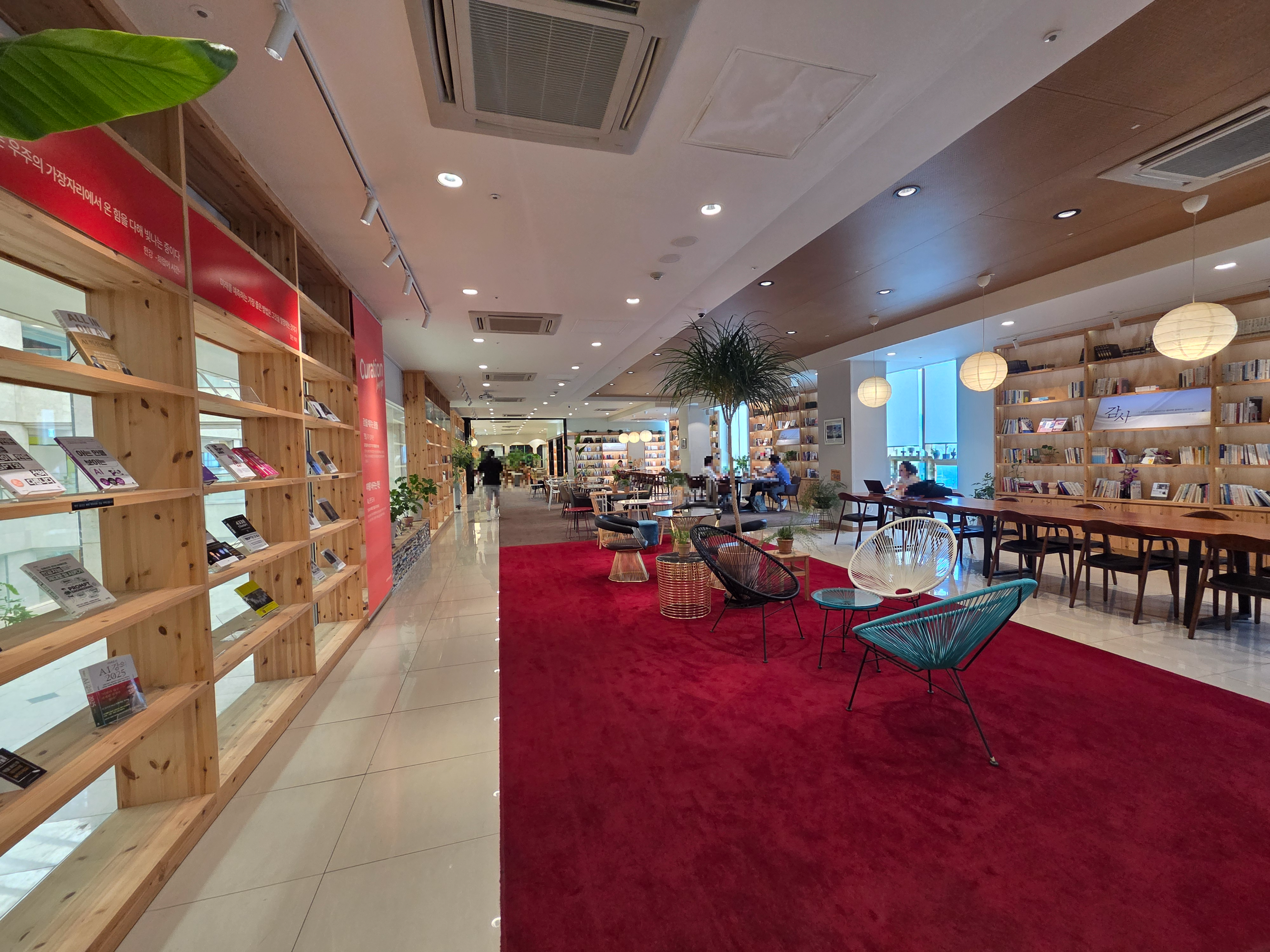 서가에는 다양한 분야의 책이 잘 정리되어 있습니다. 유명한 책은 물론이고, AI나 트렌드 관련 주제, 한강 작가님의 작품 등 관심 가는 분야로 큐레이션된 책장도 따로 마련되어 있어요.